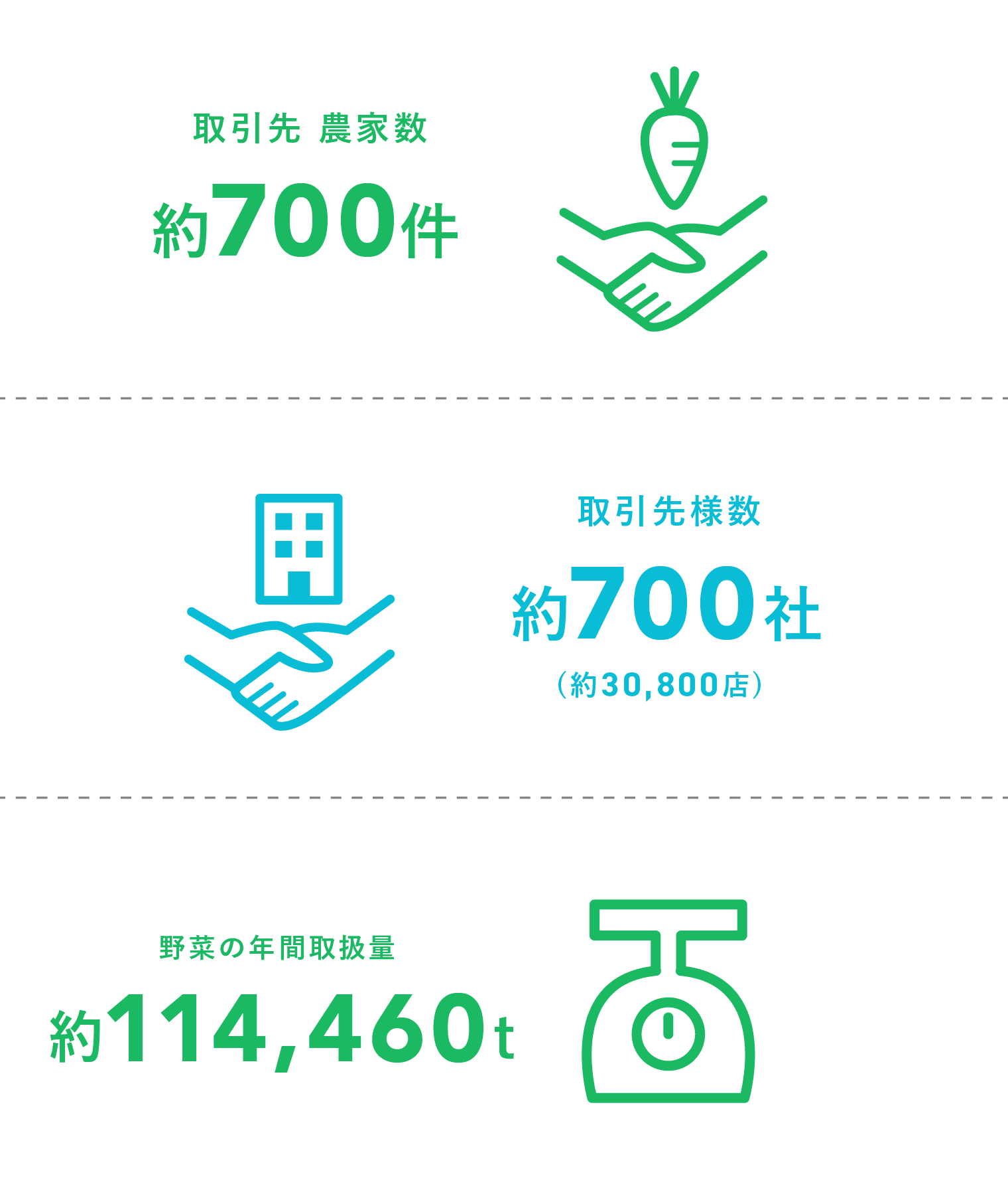 入社して半年が経ち、現在は2つのお客様を担当していますが、まだ自分の担当範囲についてしか理解できておらず、学ぶべきことがたくさんあると感じています。これからは、さらに多くのお客様を担当し、野菜の種類や規格、お客様ごとの条件をしっかり把握して、知識を広げていきたいと思っています。