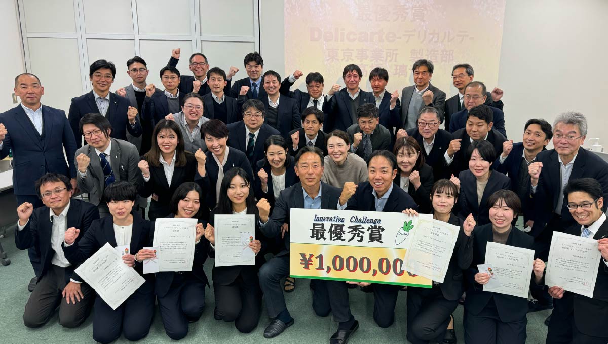 「前の会社では、頑張った事が評価されなかった」というキャリア入社社員も多いなか、デリカフーズは前向きに取り組んでいる社員を応援する制度が充実しています。例えば、年に1回開催される「イノベーションチャレンジ」は、「1年間自分(チーム、部署でも)が工夫して取り組んだ結果生産性が上がった」「自分が行った改善を全国に展開したらさらに会社が良くなるのでは」と言ったことを提案・発表できる社内でも大きなイベントで、内容次第では全国にも展開・導入されることも。誰でも参加可能な上、社長に直接プレゼンが出来、最優秀賞には100万円が贈呈されます! 昨年は入社1年目が自ら考え作成した「新入社員のためのマニュアル」が優秀賞を獲得。次の新入社員の事を想って、入社したての忙しさの中で作成をした熱い気持ちとマニュアルの高い完成度、勇気を出して発表してくれたことに、賞賛の拍手と賞金が贈られました。頑張った行動が評価されカタチになる。デリカフーズならではの魅力の一つです。
