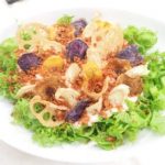 今回のご試食は、「早春野菜」をテーマにご提供させていただきました。春キャベツや香菜、タラの芽など山菜を使用したメニューを6品ご提案させていただきました。黄緑色やピンク色など、暖かい色合いのお料理で、春を感じていただけたのではないかと思います。